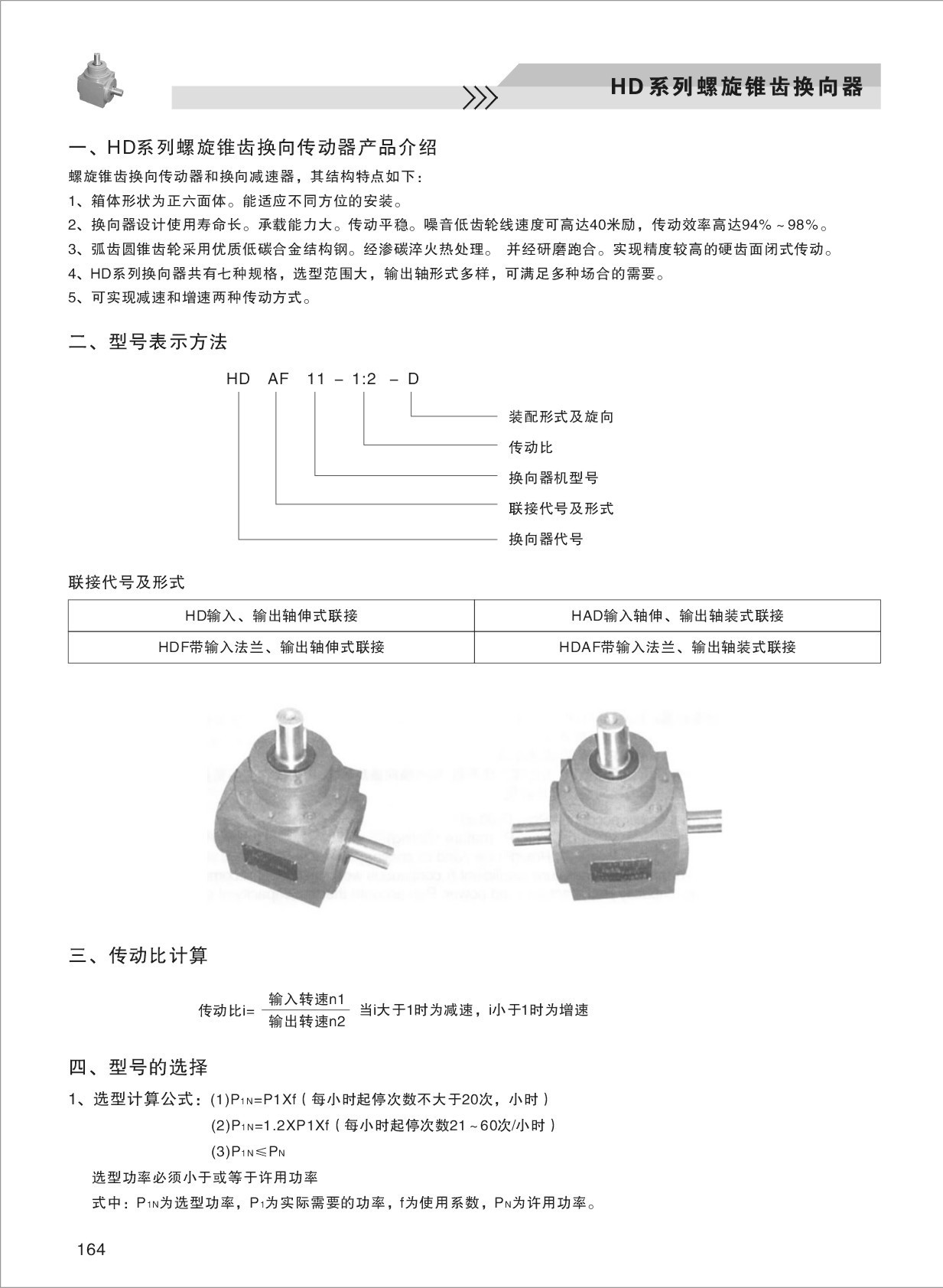SP系列換向器有SPL、SPS和SPV型,SPL用于減速傳動,SPS用于增速傳動,SPV為換向器串聯時選用。齒輪采用低碳合金鋼,齒面滲碳淬硬。該系列轉向箱齒輪為弧齒錐齒輪;齒輪采用浸油潤滑;機體材料為灰鑄鐵;加強型機體材料為鑄鋼。
