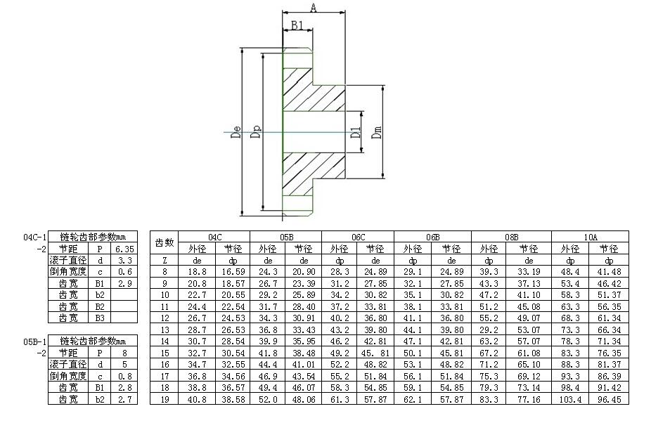 鏈輪型號:包含非標鏈輪(根據客戶圖紙定制),標準鏈輪(美標和公制)。 鏈輪常用材料:C45 鏈輪常用加工方法:淬火處理,表面發黑處理。 注:p 鏈條節距 z 鏈輪齒數 d1 鏈條滾子直徑