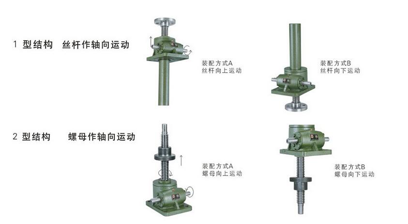 絲桿升降機(jī)結(jié)構(gòu)主要為由機(jī)身、含內(nèi)螺紋銅件、螺桿及其它附件組成。