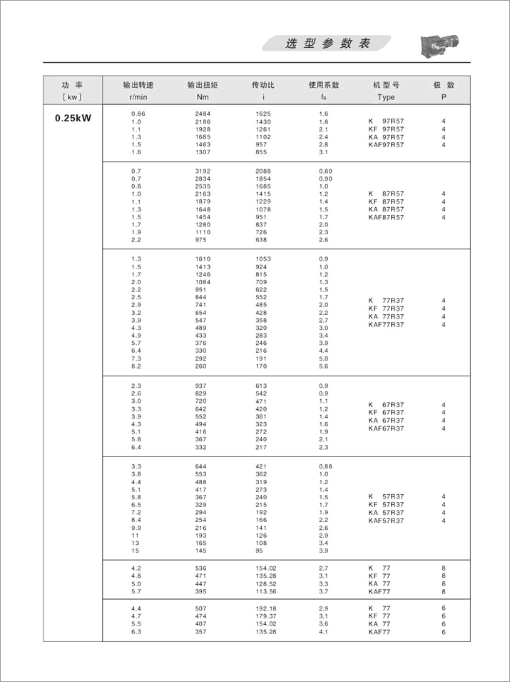 上一篇:K螺旋錐齒輪減速機選項參數表0.37KW